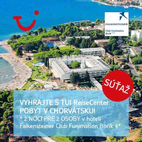 Stačí, keď odpoviete správne na súťažnú otázku a ste v žrebovaní o 2 noci pre 2 osoby v hoteli Falkensteiner Club Funimation Borik 4* v neďalekom slnečnom Chorvátsku! Súťaž trvá od 4.3. do 31.3.2021.
