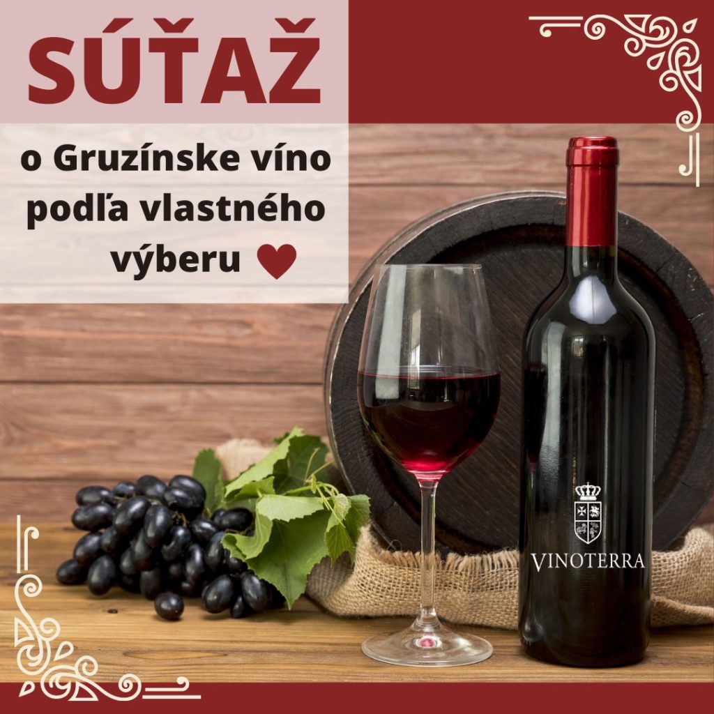 Súťaž o Gruzínske víno podľa vlastného výberu Vyhrajko 5 rokov ago Keďže vám červené víno chutí viac, pripravili sme vám SÚŤAŽ o červené víno podľa vlastného výberu Koniec súťaže: 20. 11. 2020 SÚŤAŽIŤ